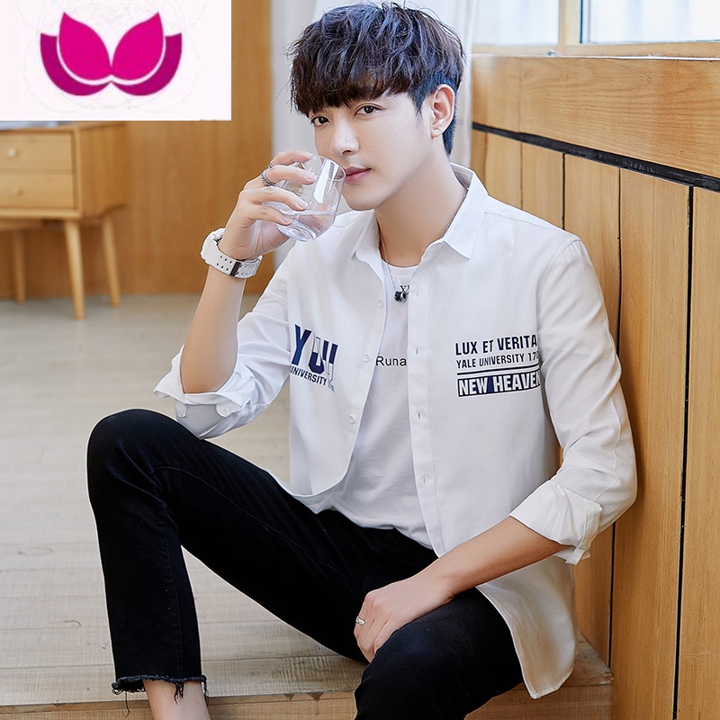 七斓男士长袖衬衫2023新款秋季上衣韩版潮流百搭帅气休闲衬衣外季斓衫 XXXL CS48白色