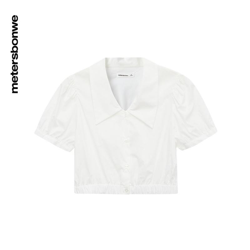 美特斯邦威泡泡袖衬衫女百搭夏季高腰松紧V领短袖上衣女_912 170/XL(高170-175重130-145斤) 雪白色