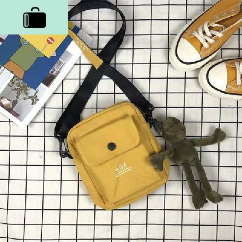 斜挎包男单肩包潮流学生休闲帆布背包男生潮牌包包ins潮小包轻便NEWLAKE 黄色+青蛙