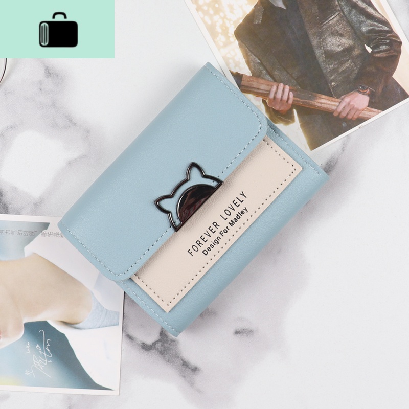 钱包女短款2020新款时尚韩版潮学生小清新女士可爱小钱夹女式卡包NEWLAKE 蓝色