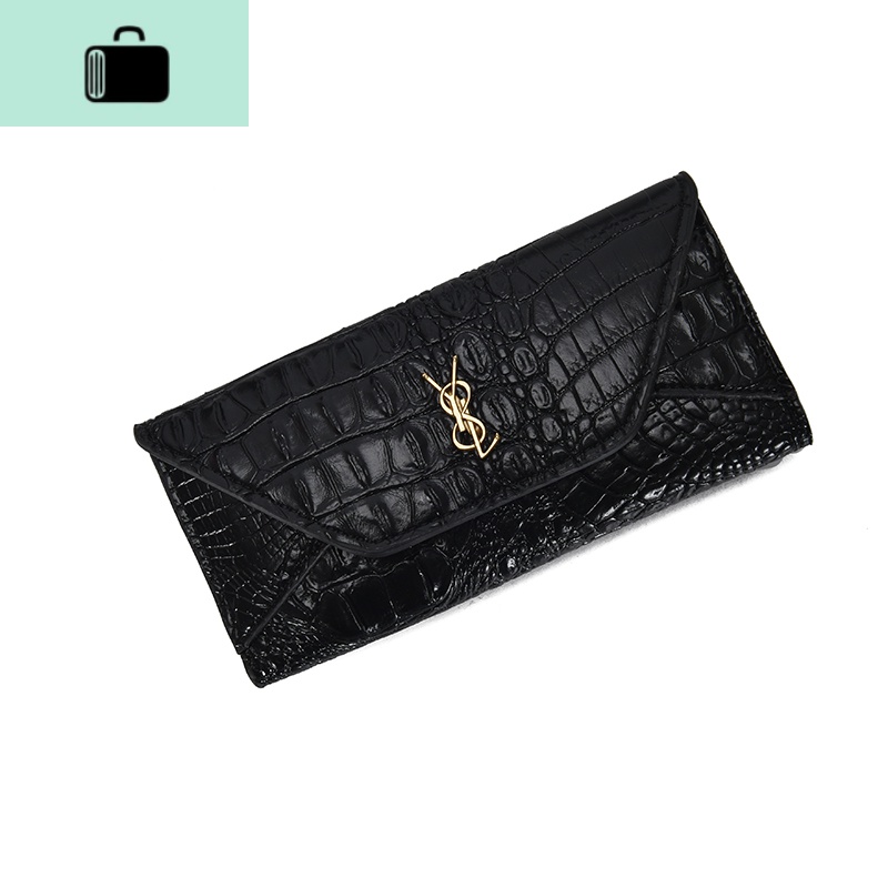 女用钱包2020超薄新款时尚女长款大气女人简约便携休闲潮流搭扣潮NEWLAKE 黑色鳄鱼纹