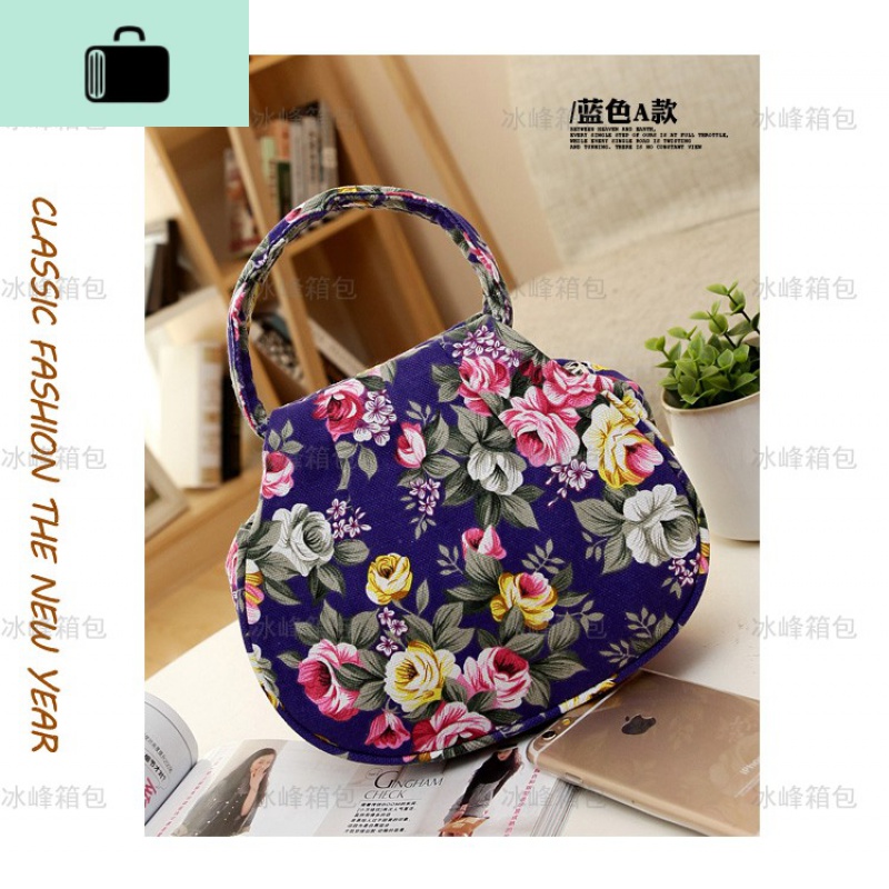 迷你手机零钱包花朵帆布包中年妈妈手拎包中老年手提小包包女士包NEWLAKE 紫色