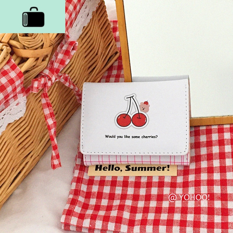 YOHOO!/原创ins风樱桃小熊/爱心日韩卡通女短款零钱包三折PU卡包NEWLAKE 白色(樱桃小熊)