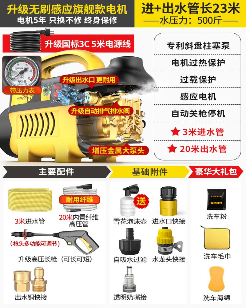 洗车机神器高压水枪大功率220v家用便携式洗地刷车强力清洗机水泵 超高强压✅Pro-D【感应无刷铜芯大电机】【高清压力表】23