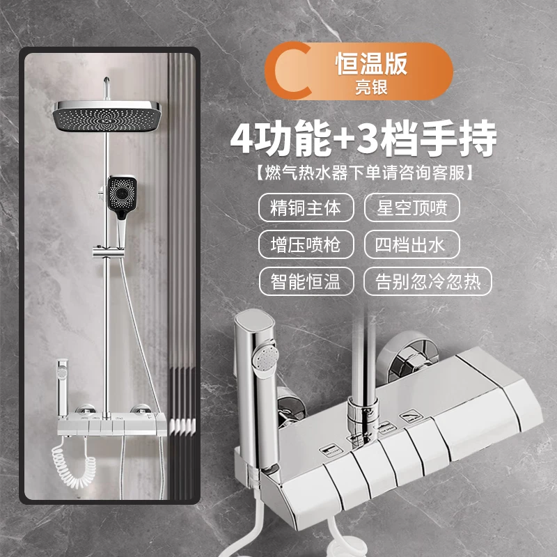 淋浴花洒套装家用精铜恒温沐浴卫浴增压洗澡喷头枪灰浴室花晒2005 【亮银】四功能恒温款【免费安装】