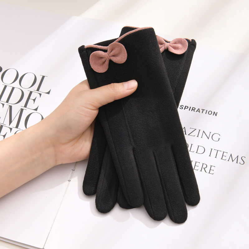 南极人手套女士秋冬加绒加厚保暖骑行防寒开车可爱触屏棉手套冬天防风H 黑色1593