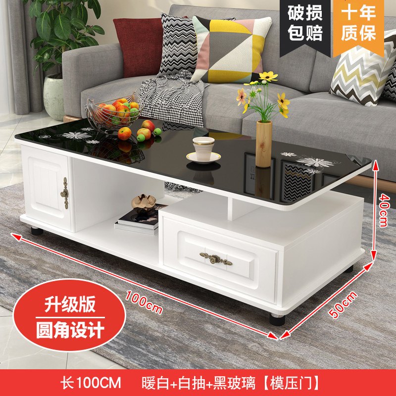 圆角茶几桌客厅家用简约现代小户型大理石钢化玻璃桌子电视柜组合_677_517 1米茶几圆角暖白+黑玻璃【模压_】_组装