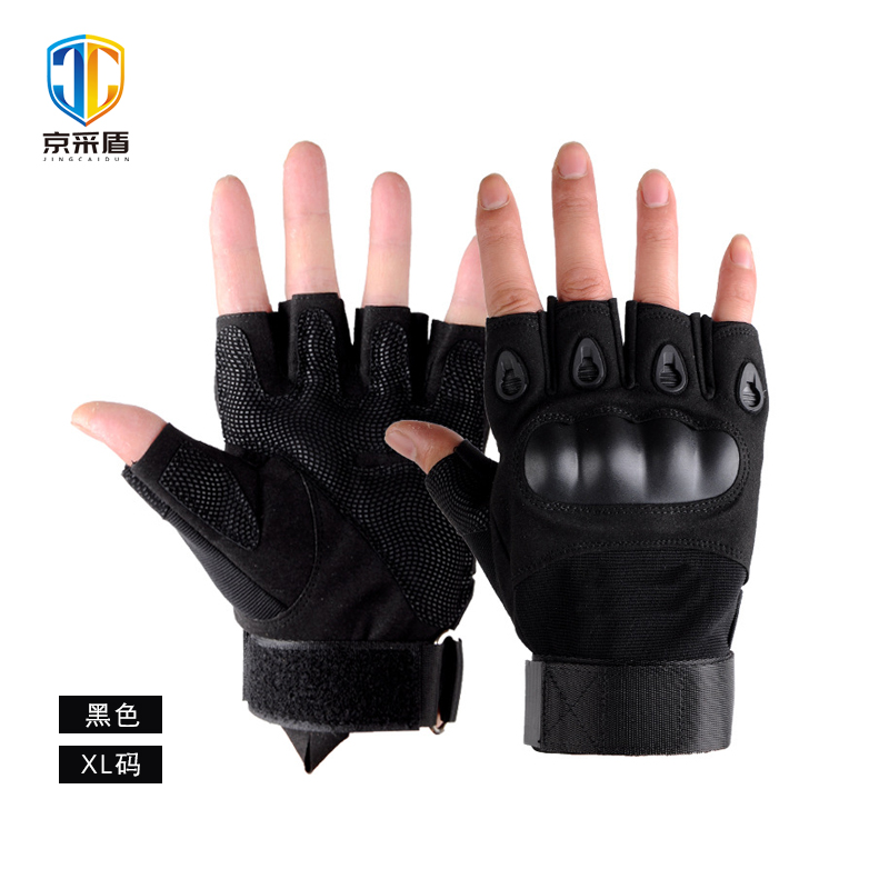 京采盾男士半指手套登山防护耐磨自驾骑行运动黑色XL码