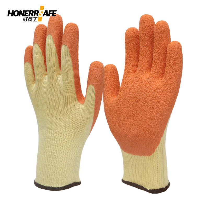 好员工 R700-C 涤棉浸胶手套 10针黄纱橘红乳胶皱纹手套 12双/打 (1打)
