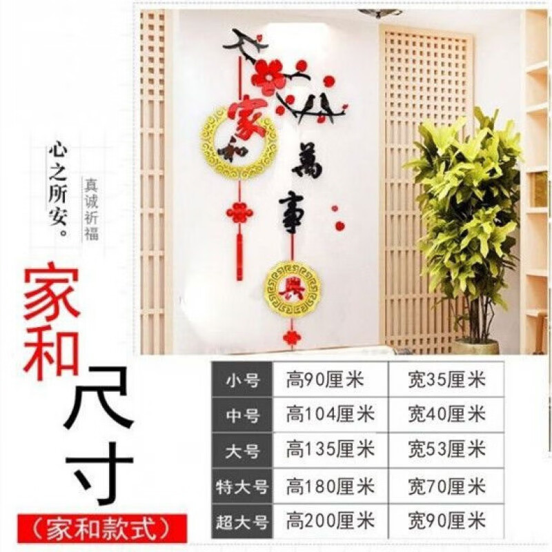 维诺亚3d立体亚克力墙贴纸贴画客厅餐厅卧室玄关电视背景墙上房间装饰品 308家和万事兴(黄色)