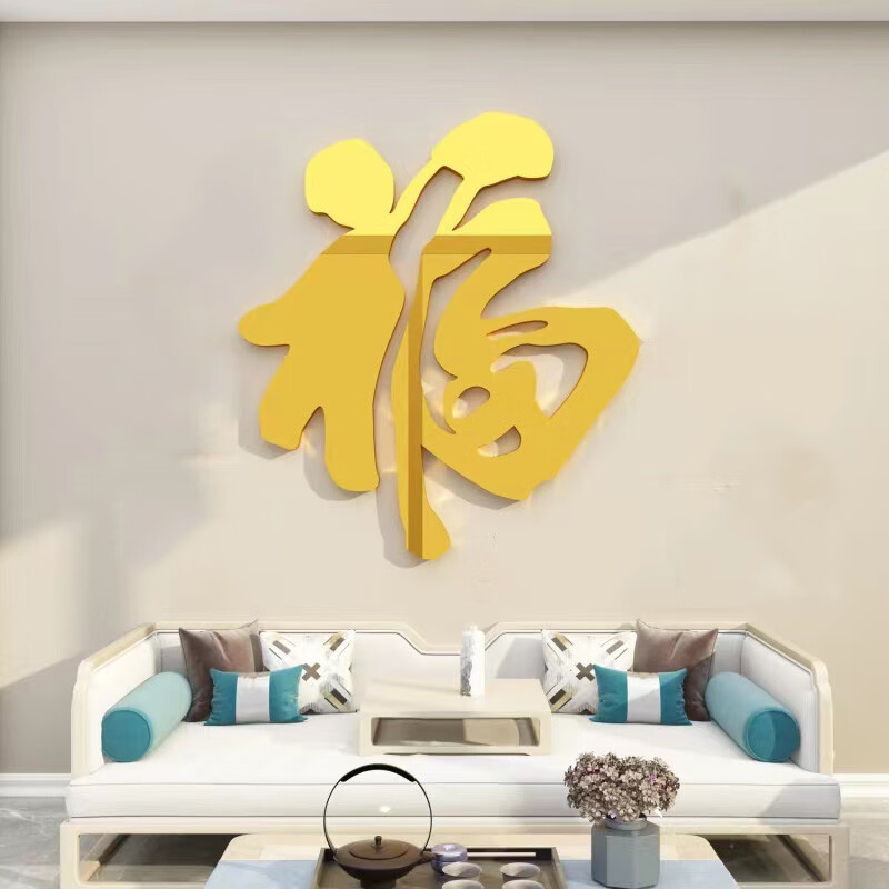 维诺亚新年福字亚克力3d立体墙贴玄关客厅沙发电视墙2025春节装饰自粘画 福2金色