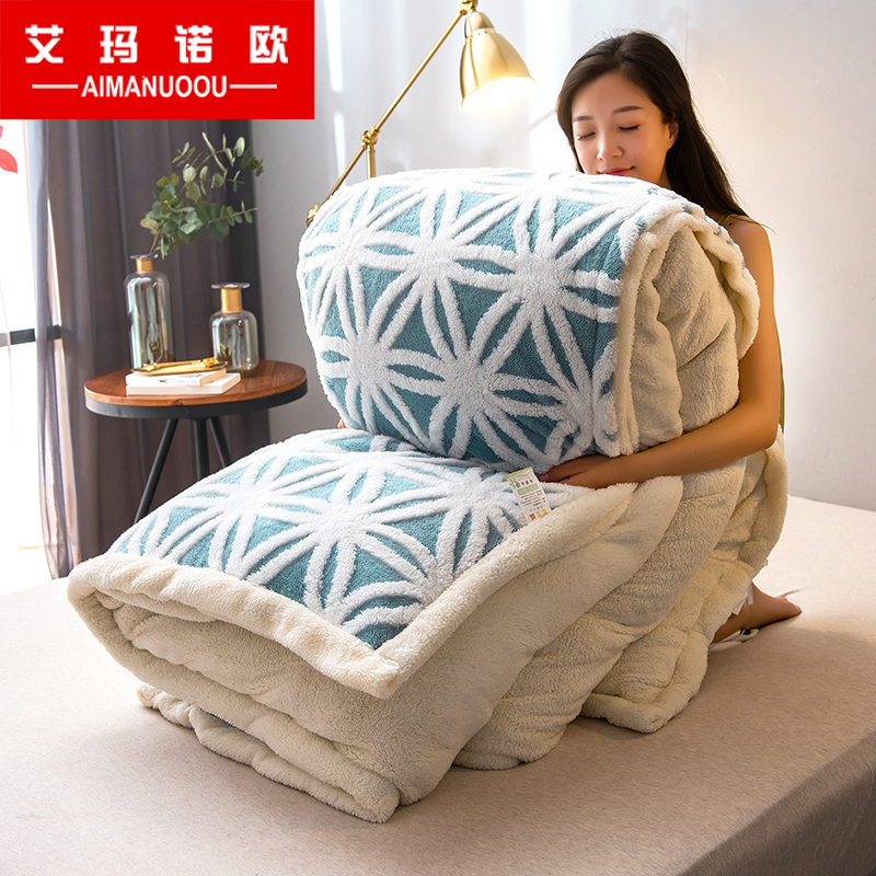 艾玛诺欧家纺 多功能提花舒棉绒毛毯被 秋冬加厚被套被子盖毯 舒棉绒蓝Ys 1.0*1.5m