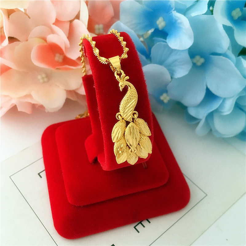 新款沙金孔雀凤凰手链 仿真假黄金24K镀金女士手镯婚庆不掉色饰品 凤凰项链