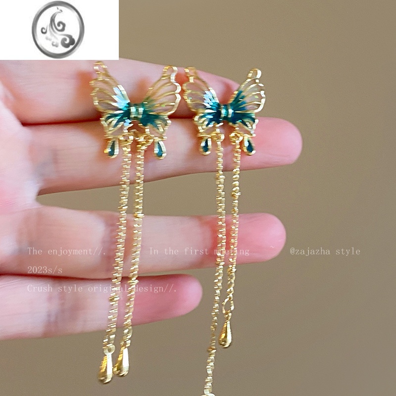 JiMi三件套!薄荷绿蝴蝶戒指女2023年新款网红气质手镯轻奢高级感耳钉 薄荷绿蝴蝶耳环