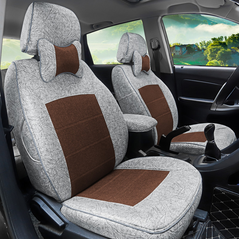 汽车坐垫英朗捷达朗逸宝来阳光轩逸冰丝全包围亚麻布四季通用座套 C款》拼接细麻+咖色