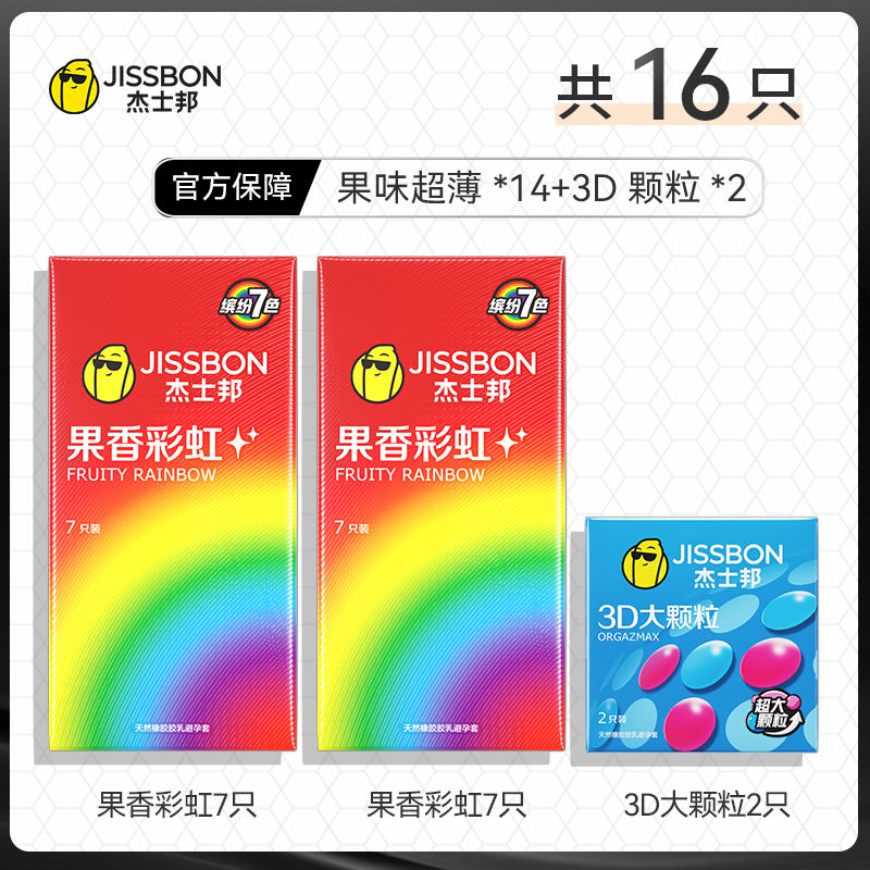 杰士邦果味避孕套果香彩虹超薄情趣安全套超水润颗粒男用成人正品 16片装