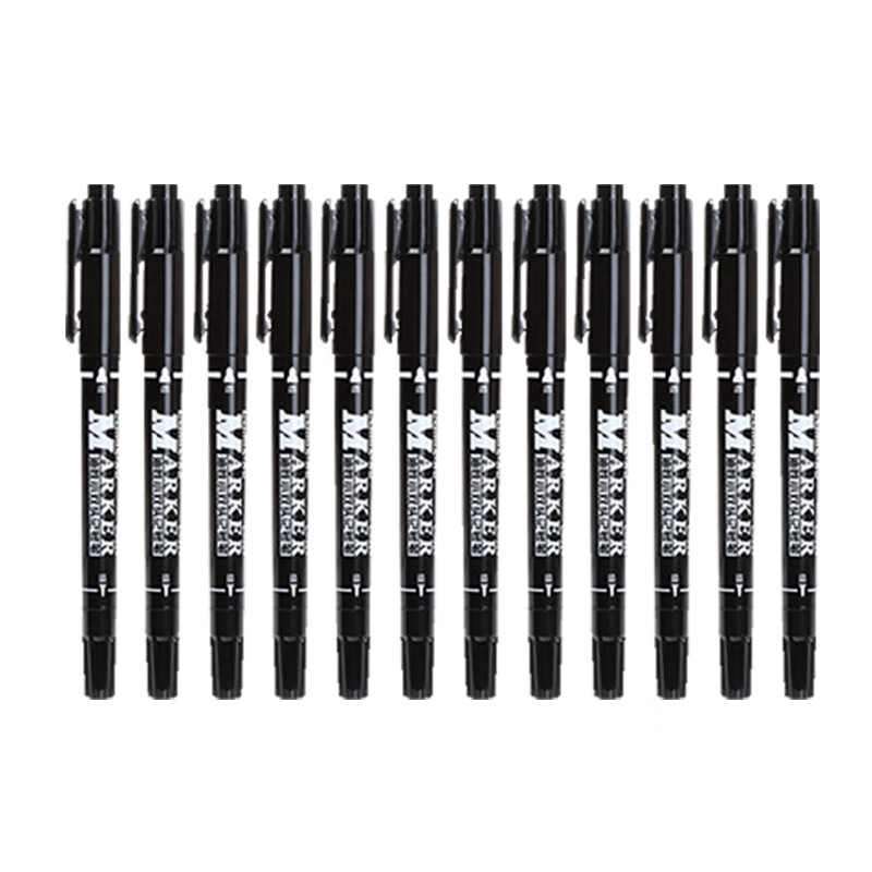 自营 齐心(Comix)小双头防水速干勾线笔油性笔物流记号笔大头笔马克笔12支/盒 工具 黑色 EM829