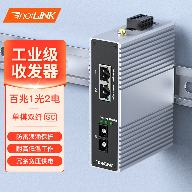 netLINK工业级光纤收发器百兆1光2电光电转换器交换机导轨式SC接口HTB-6000-10S-1FX2FT-25KM