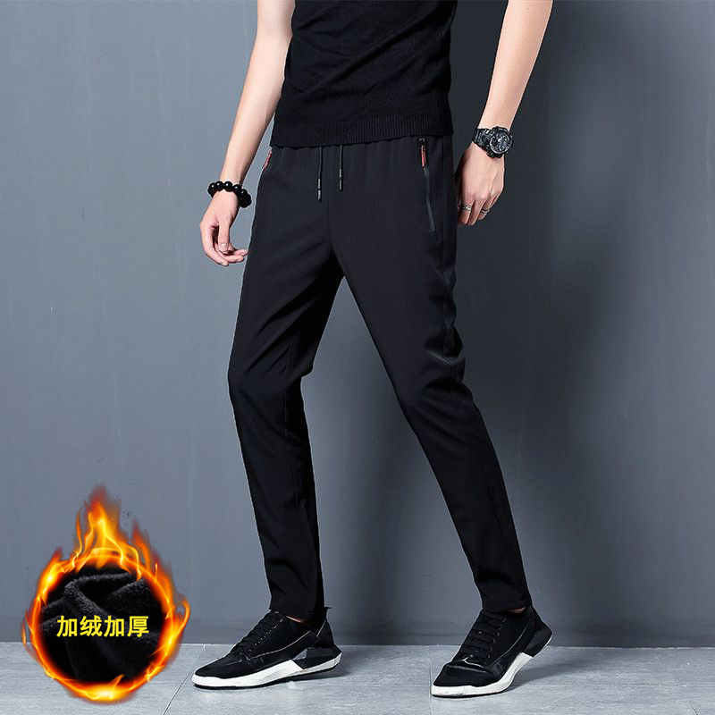 夏季冰丝薄款休闲裤男士韩版修身运动裤男免烫直筒长裤子_150 3XL建议145-160斤一厚薄可选 黑色【单条装】冬季加绒款