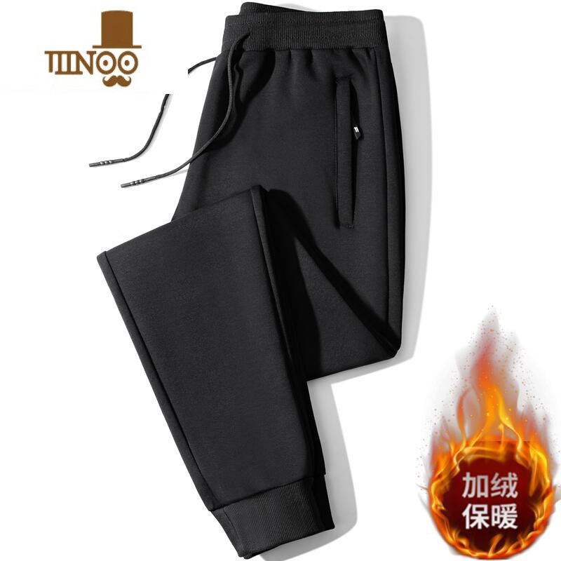 YANXU加绒裤男外穿潮流纯色百搭宽松口袋拉链运动男士休闲卫裤子 5XL建议175-195斤 黑色束脚加绒款