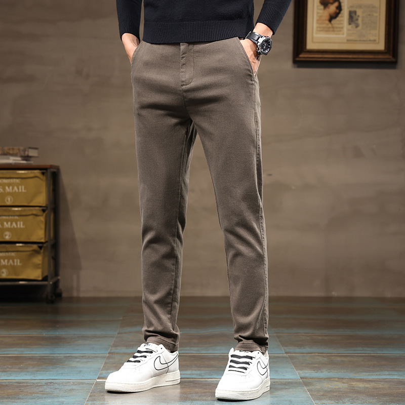 跨境裤子男加绒时尚简约修身长裤男款防风舒适抗寒休闲裤男士 32(2尺5)140斤 9802咖啡常规