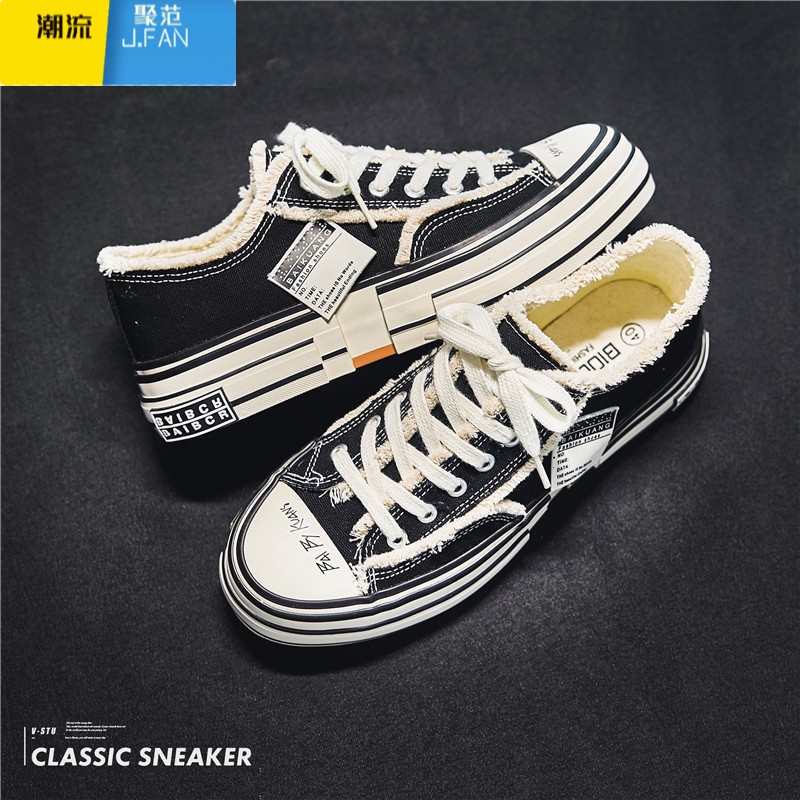 聚范男鞋子潮鞋明星同款乞丐鞋男款百搭小众厚底帆布鞋低帮国潮板鞋女 黑色 38