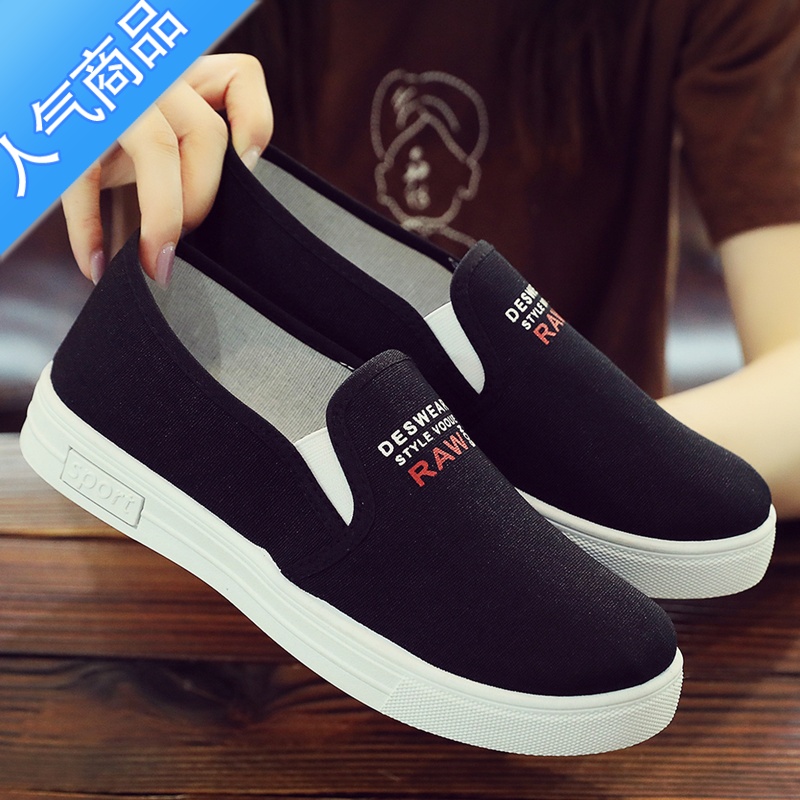 SUNTEK春夏季一脚蹬帆布小白鞋女透气防滑学生厚底懒人鞋老北京布鞋女秋 181黑色 39