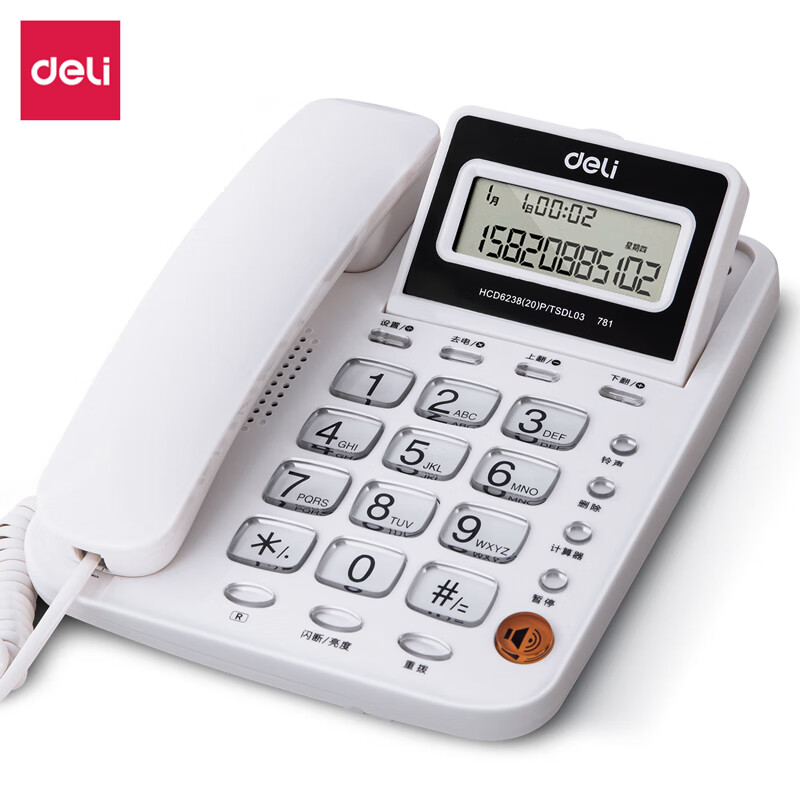 得力 电话机座机 固定电话 办公家用 翻转屏幕 免电池 781白【清】