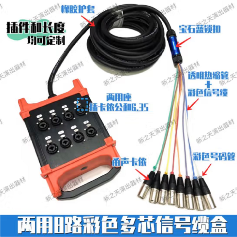 自营 MRWHO 多功能音频接线盒 含6.35直插母8位 无损屏蔽音频专用线8条*5米 6.35镀银头4支 卡农公镀银头4支