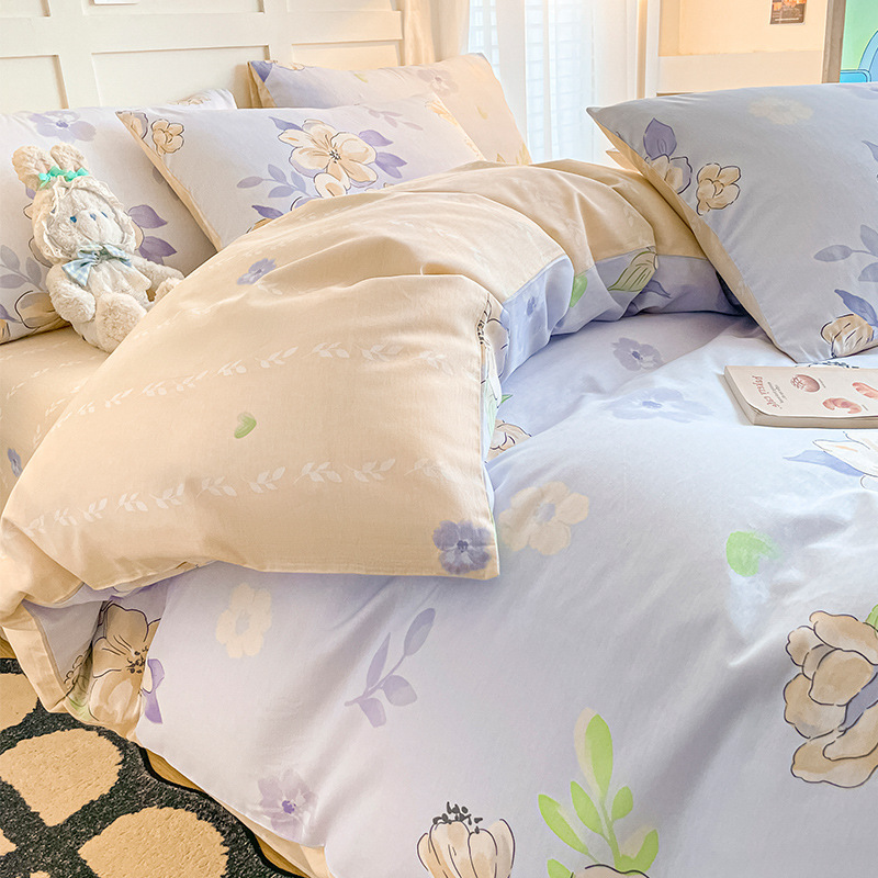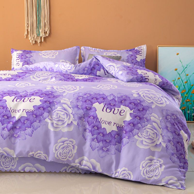 被套四件套床上用品被罩床单枕套少女心网红4件套学生宿舍三件套_819 1.5米被套+1.8米床单+枕套1个 紫色爱心