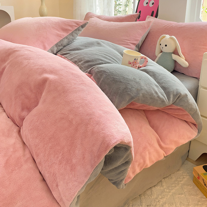 冬季加厚牛奶绒四件套牛奶绒珊瑚绒床单被罩双面法兰绒床上三件套_920 2.0m床单四件套被他2.2*2.4m床单2.45*2.5m 纯色-豆沙灰