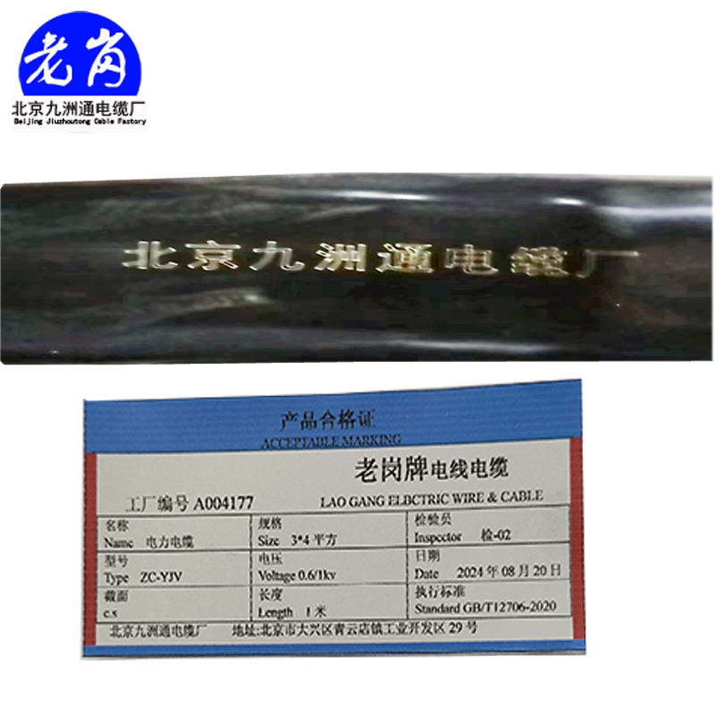老岗 电力电缆 3芯电缆 阻燃铜芯 ZC-YJV-3*4平方 (米)