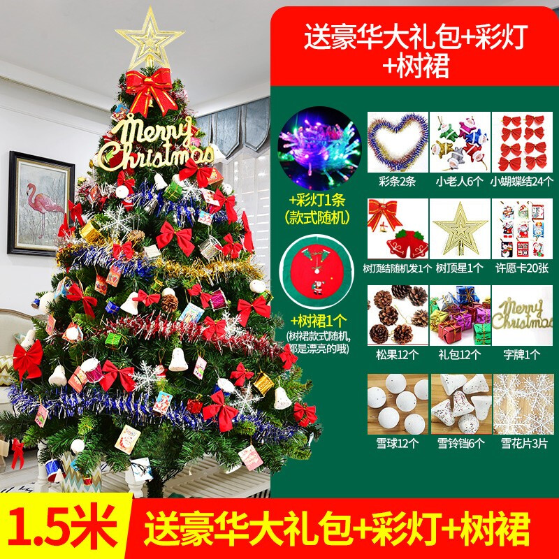 林檎圣诞节圣诞树套餐1.5米1.8米2.1彩灯圣诞节装饰挂件场景摆件商铺家庭公司1.5米 1.5米彩灯套餐(101个配件+树裙圣诞