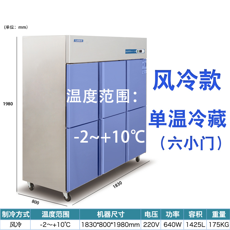 自营 六门冰箱/尺寸:1830*800*1980mm/风冷/单温冷藏