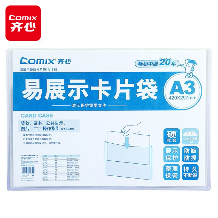 齐心(Comix) 易展示卡片袋 A3 透明硬质 营业执照正本保护套 A1739