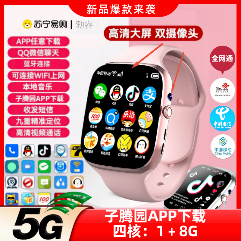 自营 勃睿【苏宁自营】5G双摄款M95(子腾园App下载)微信聊天支付QQ音乐抖音视频手机远程管理AL智能小度9重AI定位手表 官方高配.全网通5G﹢双摄像头粉色粉胶