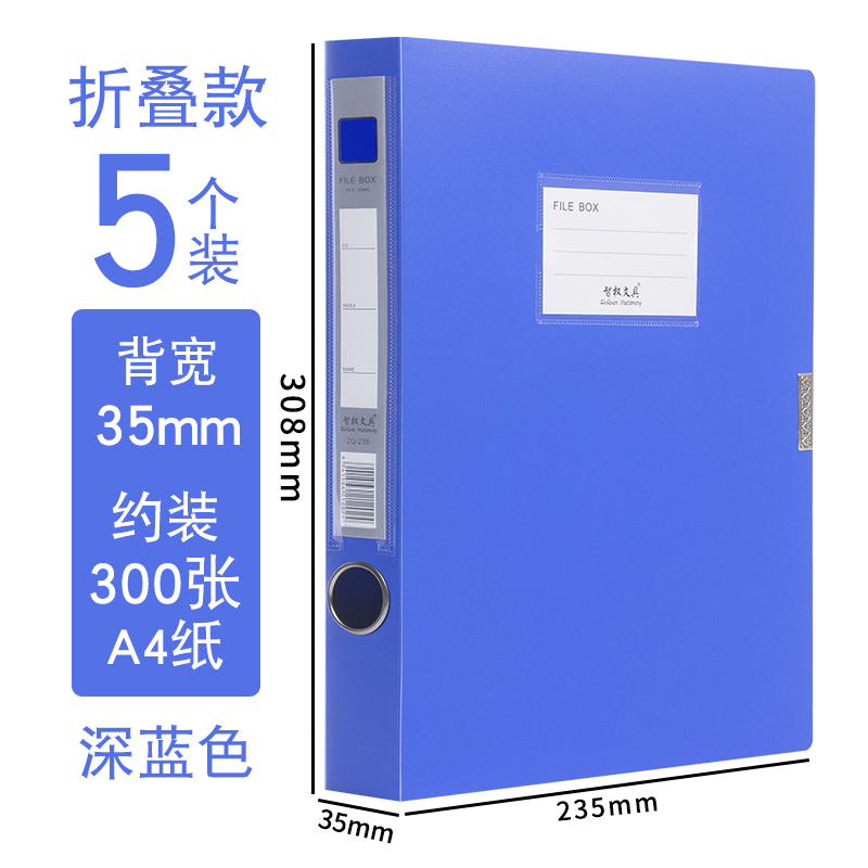 A4档案盒20个装文件资料盒折叠办公塑料文件盒大容量凭证收纳盒文件夹55mm资料盒办公用品大全可批发 【背宽35mm】-5个蓝色