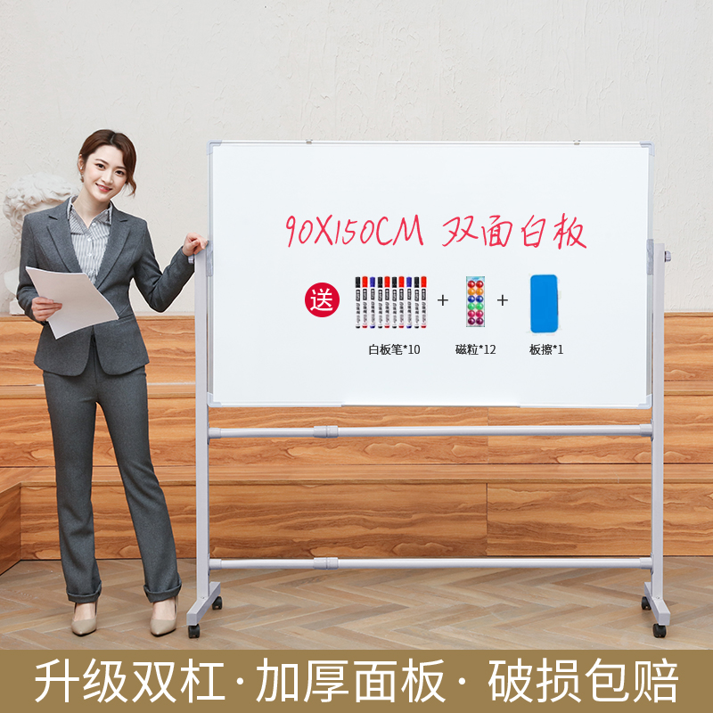 齐富AS90150 双面磁性移动白板90*150cm支架式白板 办公教学写字看板 可升降 升级面板 双面白板