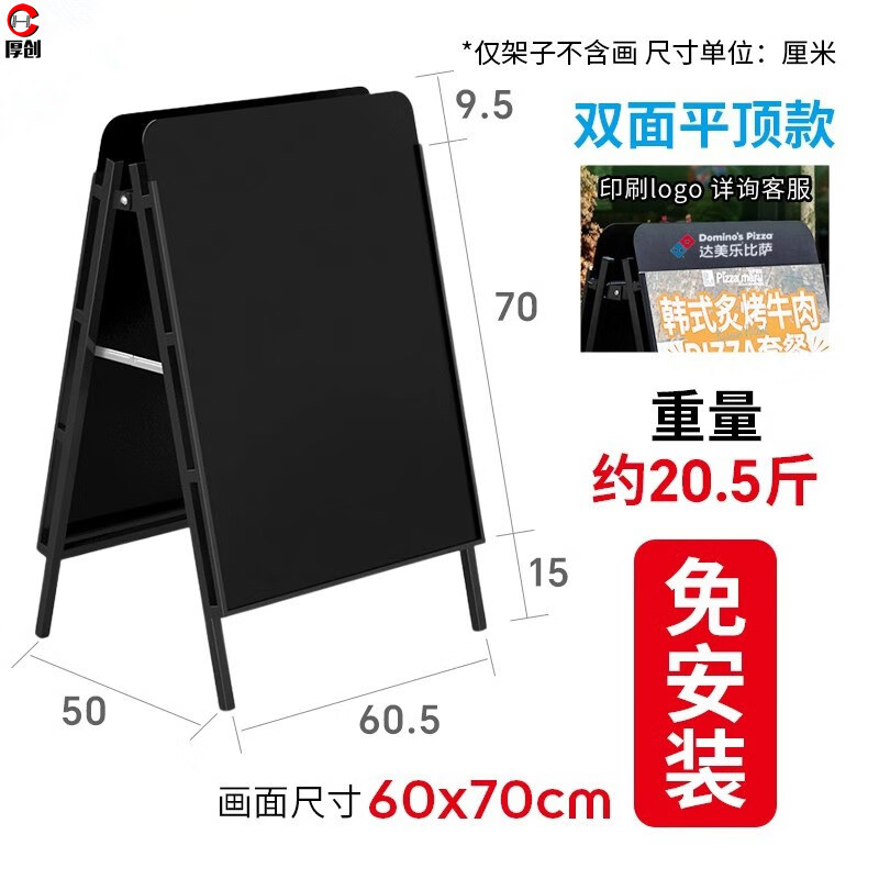 厚创 户外铁质防风海报架 手提广告牌展示架 折叠kt板展架【免安装 双面平顶XBK款 60*70cm】hc8323