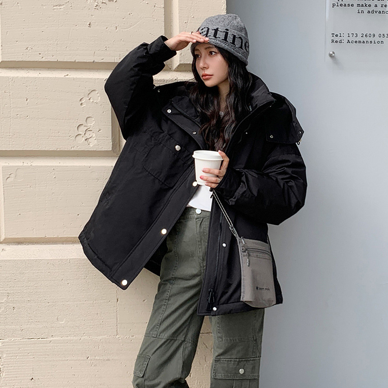 2025冬季新款平湖羽绒服女中长款户外休闲工装派克服洋气韩版加厚 S125斤以内 黑色