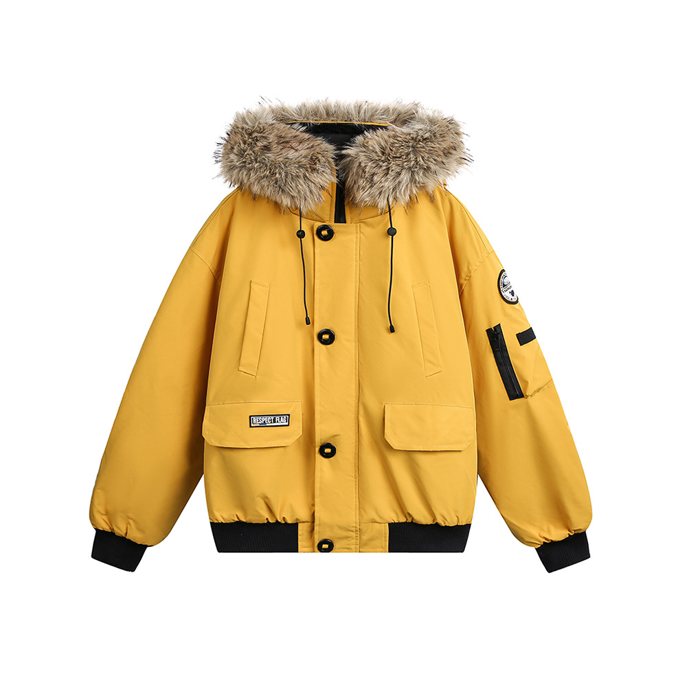 CATTEE美式学院风工装毛领棉衣外套男女冬季棉服宽松大口袋棉袄潮 M 黄色
