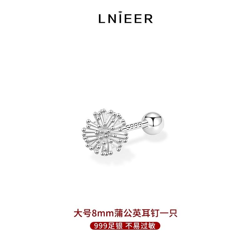 999纯银蒲公英耳钉女螺丝拧扣养耳洞耳环简约耳骨钉足银拧耳 大号蒲公英耳钉一只999足银