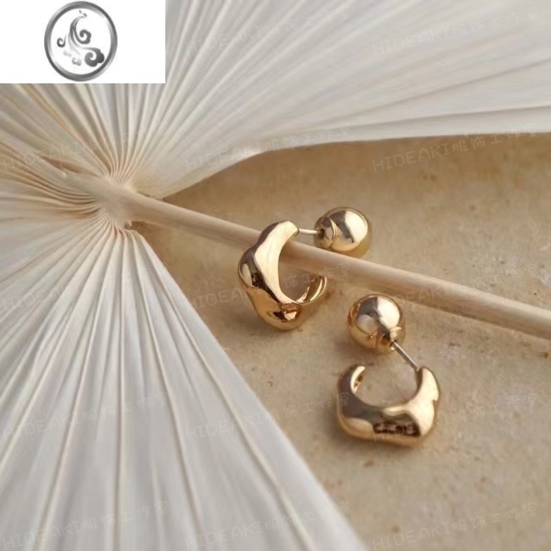 JiMiHIDEAKI圆珠多种戴法耳环耳钉圆圈气质U型不规则925银耳饰 金色