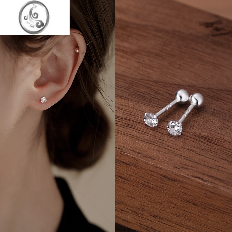 JiMi999银银耳钉养耳洞耳钉女银银耳饰小巧简约睡觉免摘耳钉女防过敏 999足银圆钻耳钉