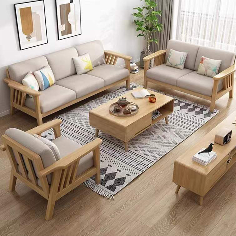 质凡 实木沙发组合现代布艺沙发三人位客厅沙发 原木色