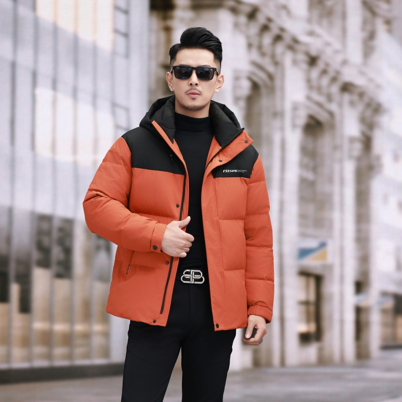 白鸭绒男士羽绒服冬装厚款连帽面包服羽绒服休闲外套冬羽绒服真皮皮衣男士连帽青年冬季加厚保暖外套鹅绒羽绒服 橘色羽绒服 175-L