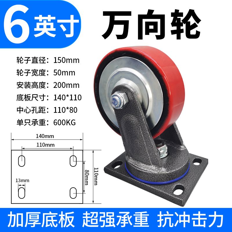 勇威(YW) 加重万向轮铁芯工业推车轮子聚氨酯PU脚轮 150*50mm-6寸-单只承重600kg