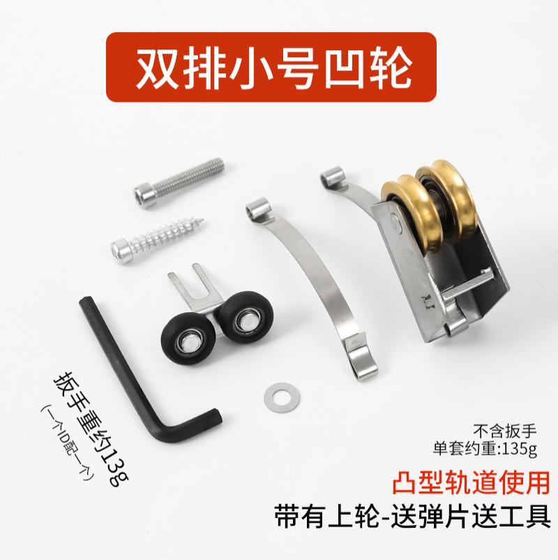 推拉门地滑轮衣柜门滑轮下轮移门不锈钢轮子轨道玻璃门卫生间滚轮--12轮距小号宽壳轴承双铜凹轮【带上轮】1个