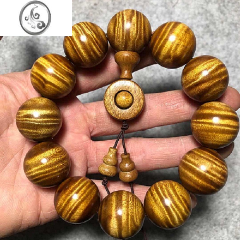 JiMi四川金丝楠木2.0佛珠手链金丝楠手串阴沉木水波影男女款佛珠手金 收藏级爆满水波20mm12颗黄色