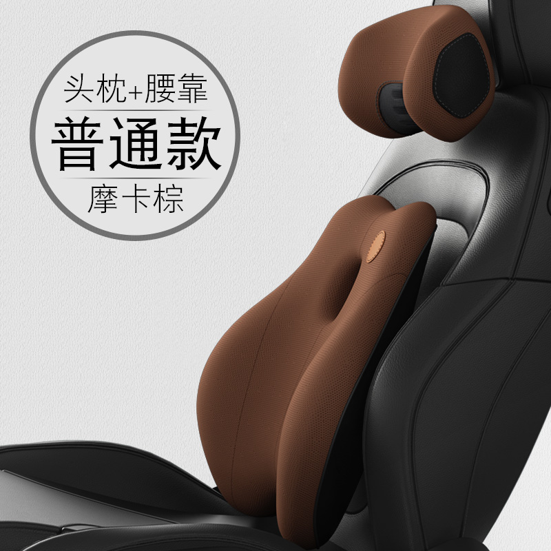 汽车腰靠车载按摩护腰靠垫车用座椅靠背腰垫开车腰部支撑腰托头 普通款-摩卡棕头枕+腰靠